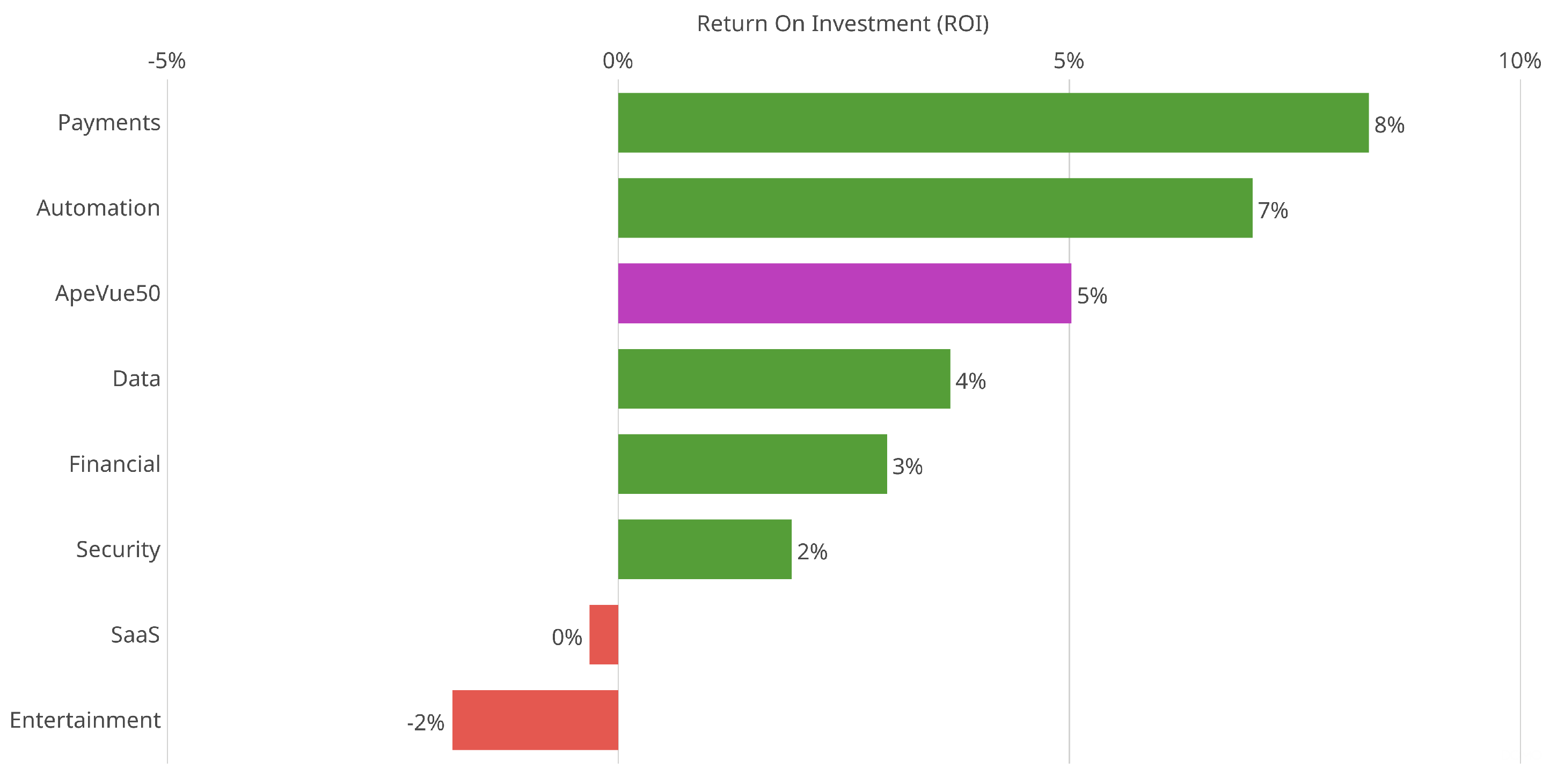Payment sector has the highest ROI at 8%.